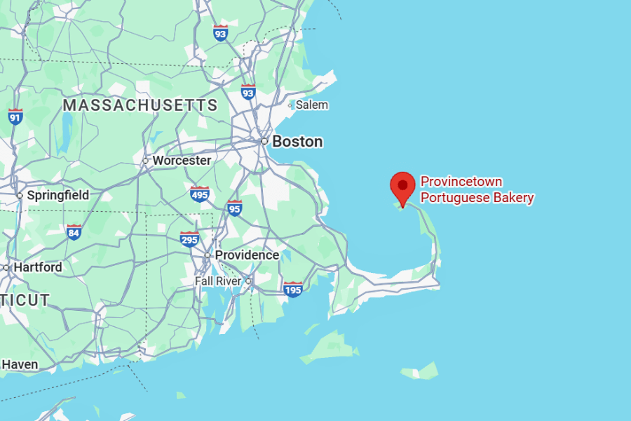 Provincetown Portuguese Bakery can be found at Provincetown’s Commercial Street, just steps from the beach and surrounded by art galleries, shops, and seafood spots.