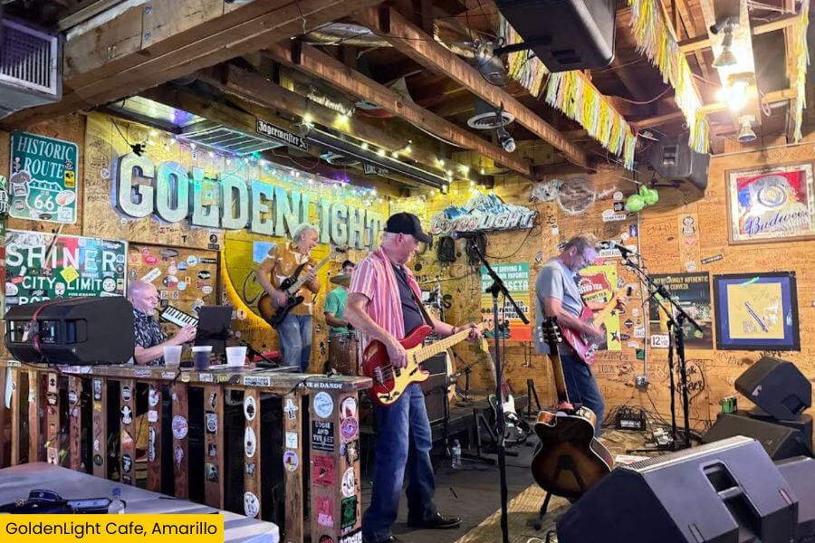 The crowd is a mix of Route 66 road-trippers, Amarillo locals who’ve been coming for years, and music fans looking for an intimate concert experience.