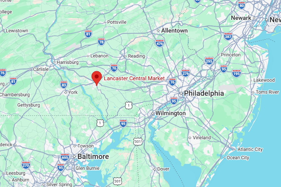 Lancaster Central Market is located in downtown Lancaster, Pennsylvania, at 23 North Market Street in the heart of Lancaster County.