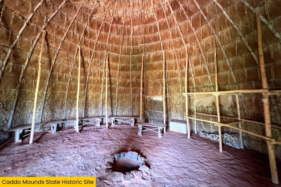 Just near the visitor center, you can walk through a traditional Caddo grass house.
