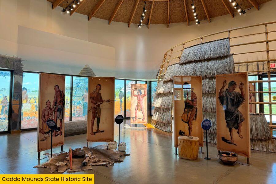 The visitor center is small but packed with helpful context, featuring artifacts on display and exhibits that explain how the Caddo lived.