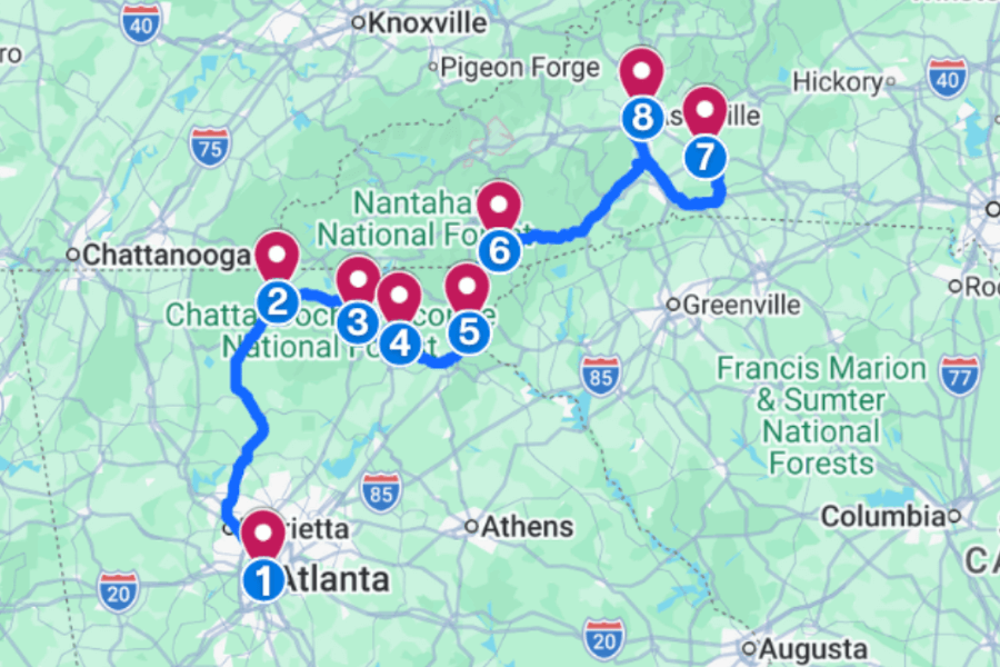 This road trip starts in Atlanta and winds its way through mountains, rivers, and small towns that feel completely different from one stop to the next.