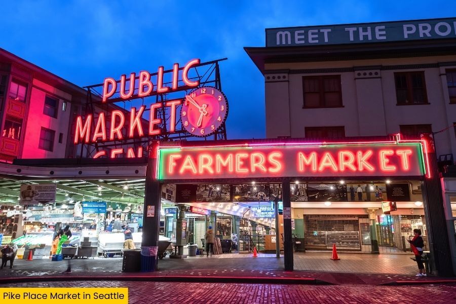 Watch the famous fish toss at Pike Place Fish Market, browse the handmade crafts at Pike Place MarketFront, and grab a photo under the iconic Public Market Center sign with the big red neon clock.