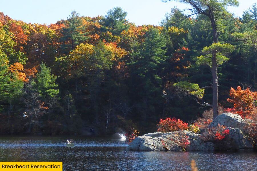 Then thereโs Breakheart Reservation in Saugus, offering 652 acres of wooded hills, two freshwater lakes, and wide-open skyline views.