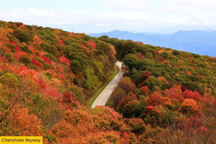 Next is the Cherohala Skyway, a 43‑mile scenic drive between Tellico Plains, Tennessee, and Robbinsville, North Carolina.