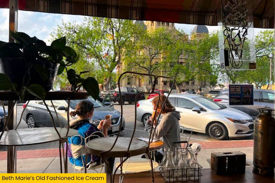 The original Beth Marie’s Old Fashioned Ice Cream is located on the historic Denton Square at 117 W Hickory St in Denton, Texas.