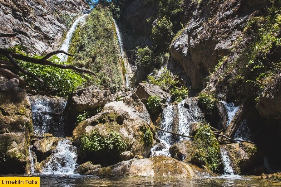 The park gets its name from four historic lime kilns built in the 1880s that still stand near the trailhead, so you get waterfall views, massive trees, and real Gold Rush era history all in one easy stop.