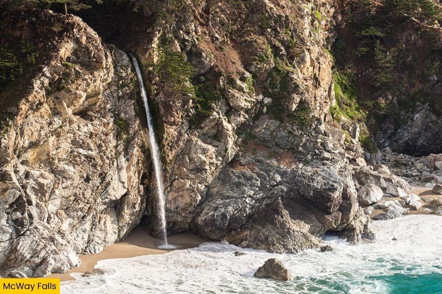 This 80 foot waterfall spills straight off a granite cliff onto a tiny sandy cove along the Pacific Ocean, making it one of the few waterfalls in California that drops directly onto a beach.