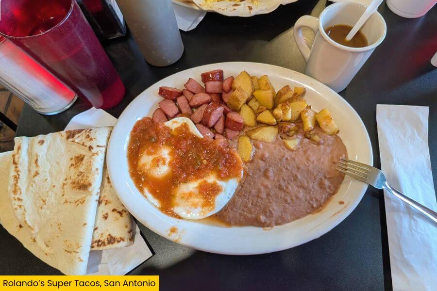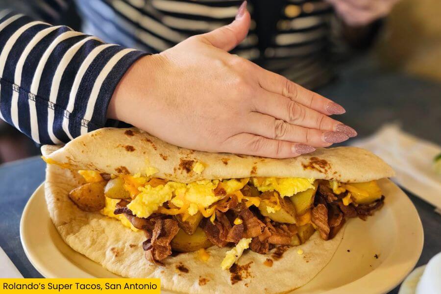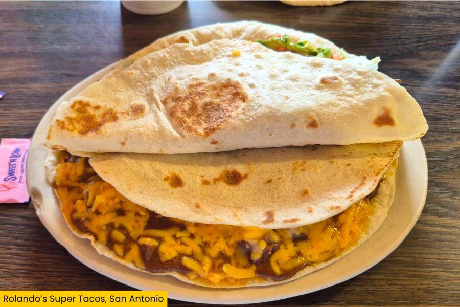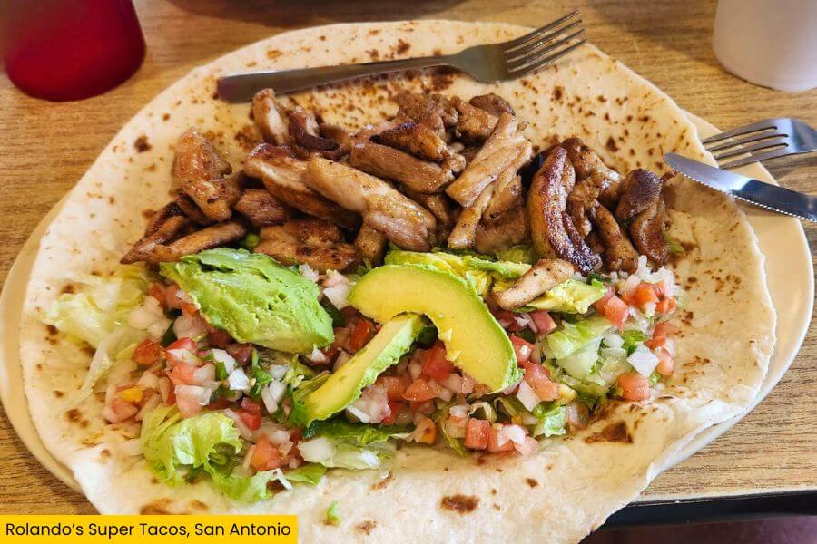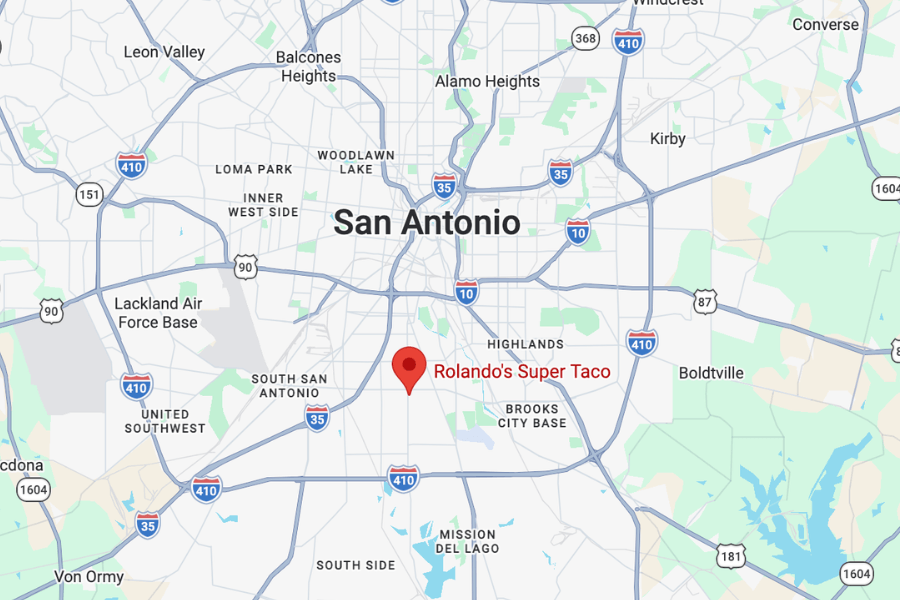 You’ll find Rolando’s Super Tacos at 93 Shasta Ave on the south side of San Antonio, Texas.