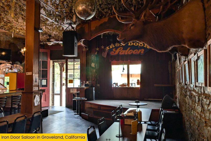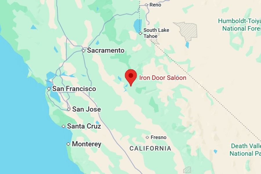 The Iron Door Saloon is in Groveland, California, a tiny town in the Sierra Nevada foothills about 30 minutes from Yosemite National Park.
