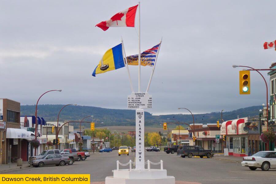 Afterward, make your way to Dawson Creek, British Columbia, the official starting point of the Alaska Highway, where the journey really kicks into high gear.