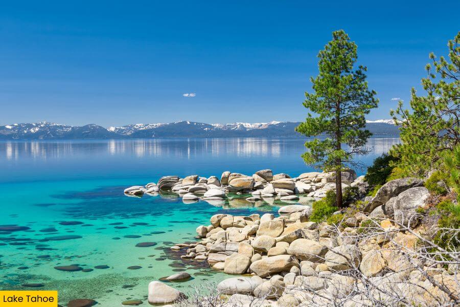 Next up is Lake Tahoe, set on the California–Nevada border high in the Sierra Nevada at 6,225 feet, with some of the clearest water you’ll see.