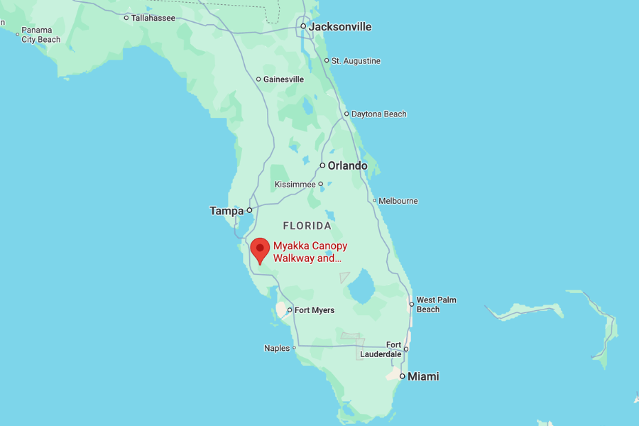 You’ll find the Myakka Canopy Walkway within Sarasota County’s Myakka River State Park.