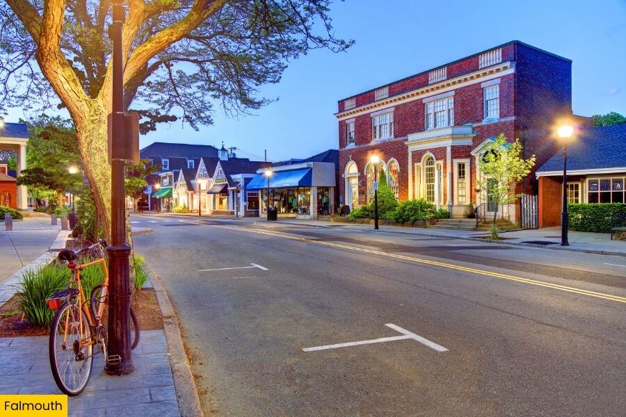 Next up is Falmouth, located on the southwestern tip of Cape Cod about 1 hour and 20 minutes from Boston, where you get front row views of Marthaโs Vineyard.