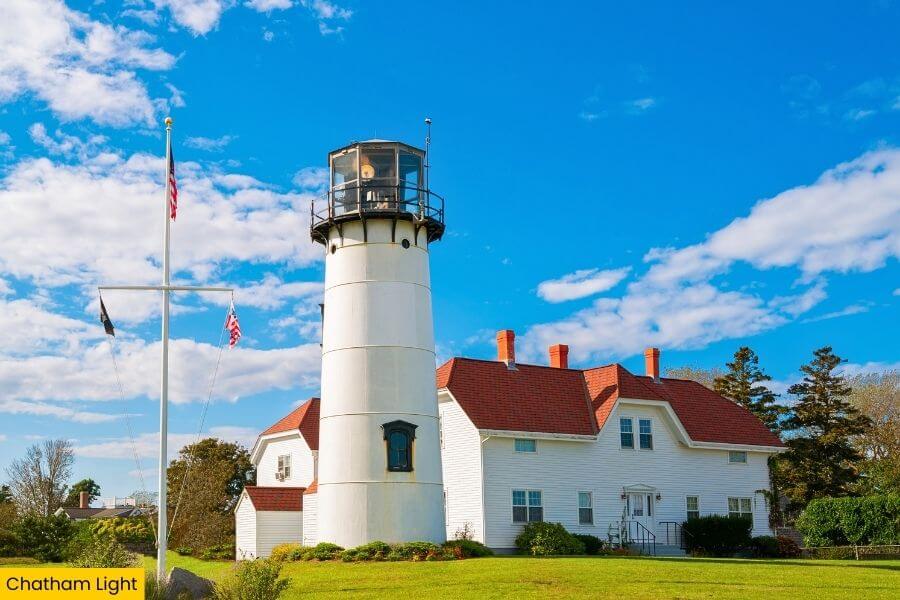 Chatham curves along the elbow of Cape Cod where the Atlantic Ocean crashes against wide sandy shores and classic white lighthouses stand watch.