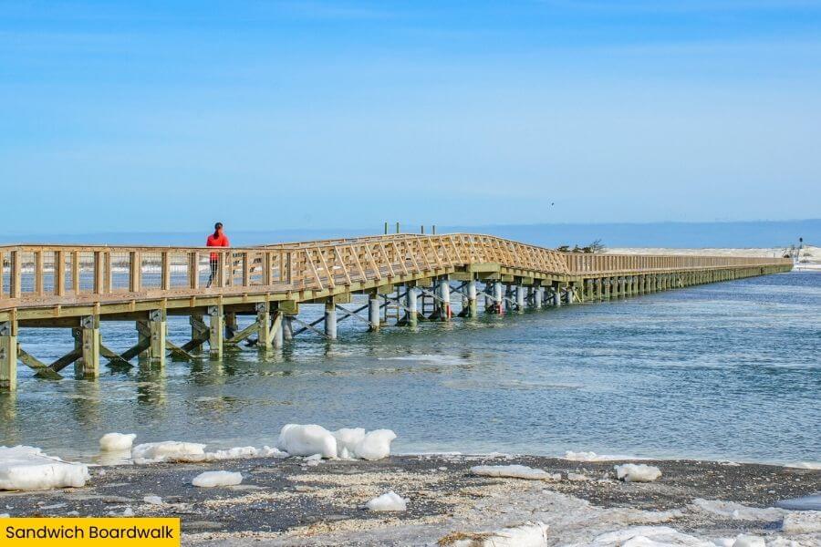 You can stroll the 1,350-foot Sandwich Boardwalk over salt marshes to Town Neck Beach, where the wooden planks lead you straight to soft sand and views of ships cruising through the nearby Cape Cod Canal.