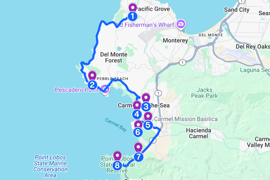 We’re going to start from the Pacific Grove Gate and work our way south through one of the prettiest coastal roads in all of California.