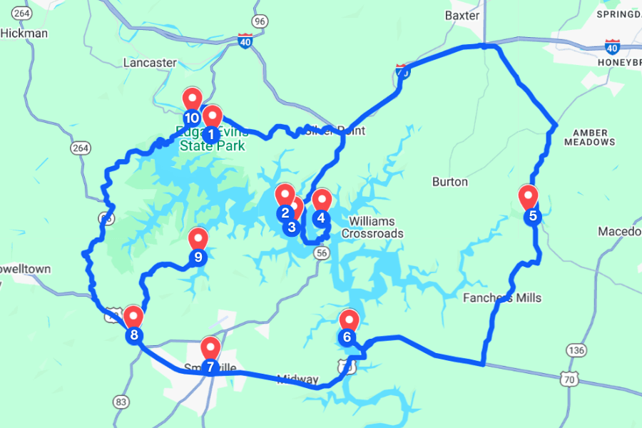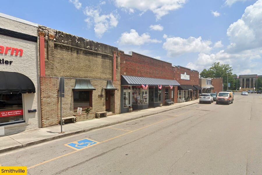 From Ragland, itโs about a 15-minute drive to Smithville, the perfect small-town pit stop to grab a bite, stretch your legs, and check out some local charm.