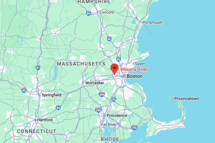 Wilson’s Diner is located at 507 Main Street in Waltham, Massachusetts.