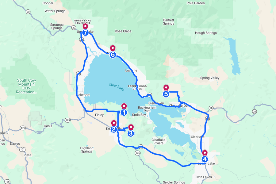 Next is the small town of Kelseyville, which offers a classic Clear Lake stop with historic buildings, local wineries, and front-row views of Mount Konocti.