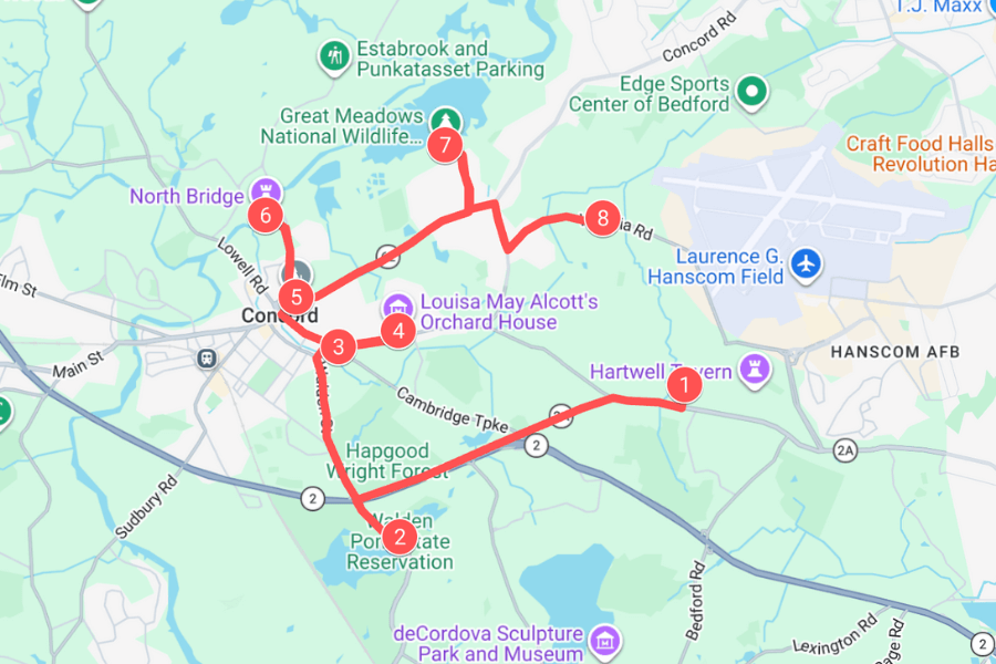Along the way, youโll pass stops like Meriamโs Corner and the 1733 Hartwell Tavern.