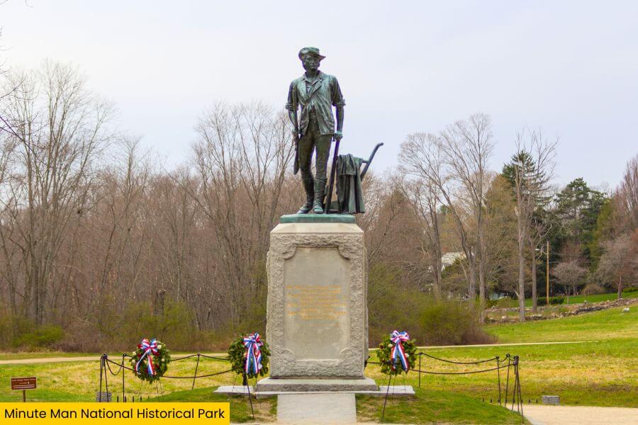 Minute Man National Historical Park covers Concord, Lincoln, and Lexington and spans more than 1,000 acres of fields, forests, and historic colonial roads.