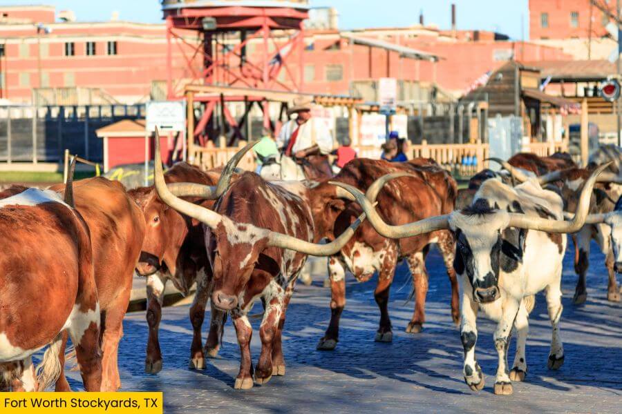 Just a quick 35-minute drive from Dallas, the Fort Worth Stockyards feel like stepping into an Old West movie, complete with real longhorns.