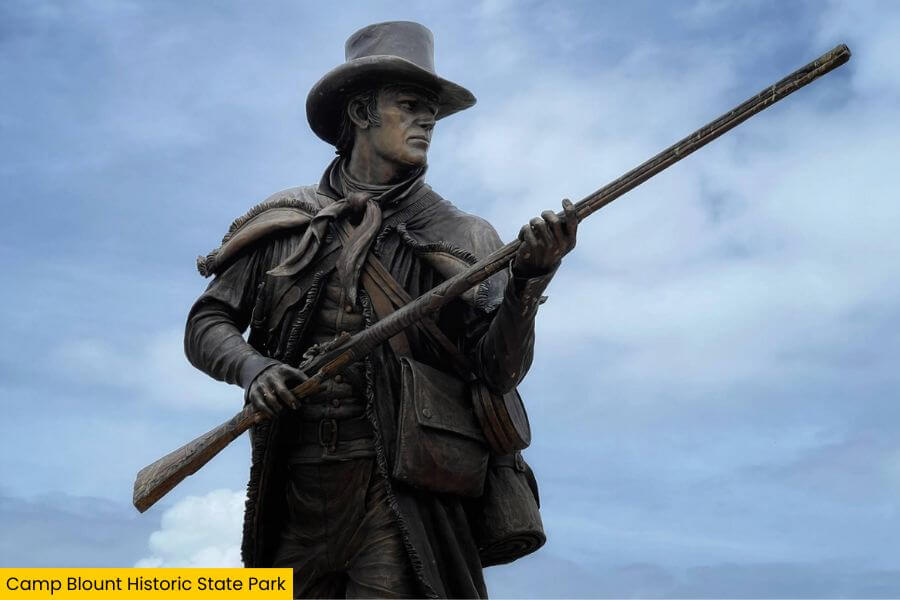 You can stand on the same ground where thousands of troops once trained, with a bronze statue honoring the spirit of Tennessee volunteers like Crockett.
