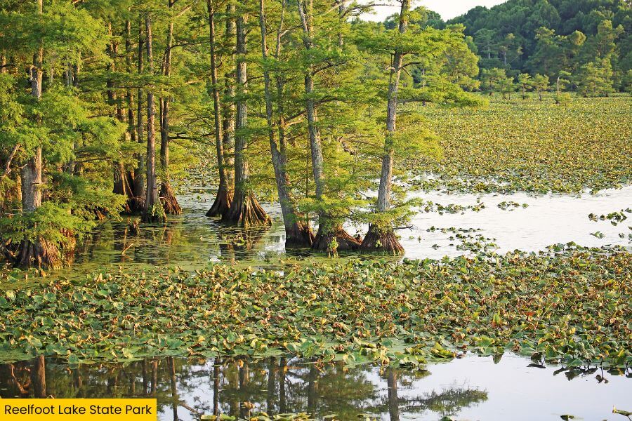 Reelfoot Lake State Park is home to a 15,000-acre lake, created when earthquakes in 1811 and 1812 briefly made the Mississippi River flow backward.