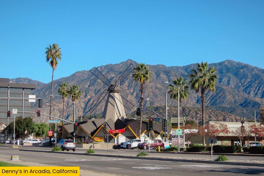This famously weird Denny’s is located at 7 East Huntington Drive in Arcadia, California.