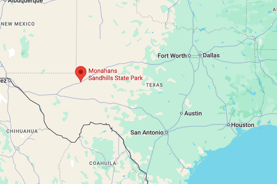 It’s about 30 minutes from Odessa and on the edge of the city of Monahans, where you’ll find gas, food, and solid lodging options if you’re not into camping.