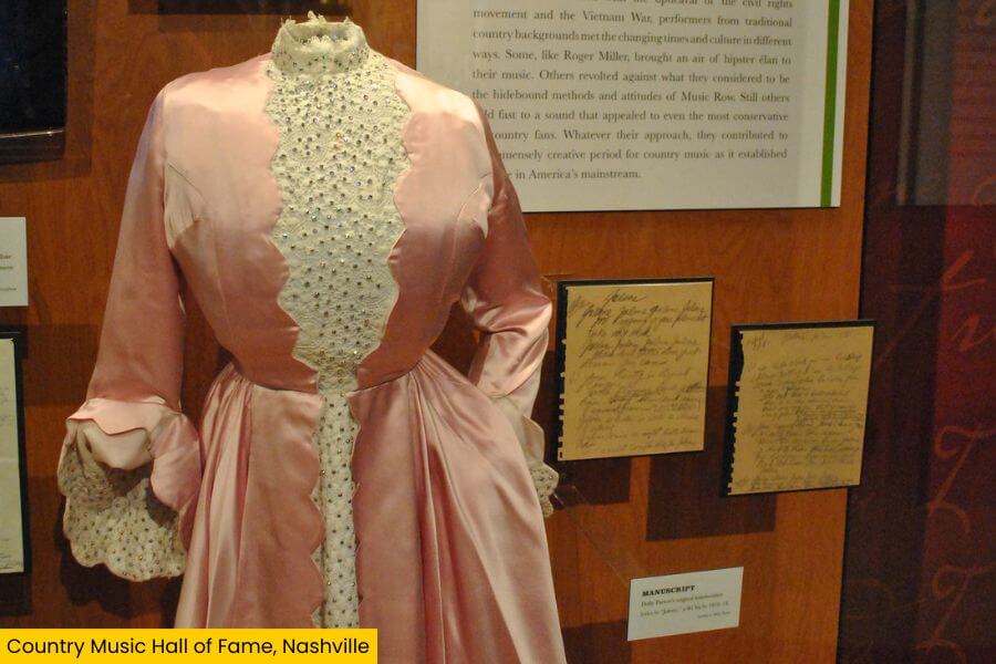 Inside, you’ll spot Dolly’s actual stage costumes, handwritten lyrics, and even the rhinestone-studded instruments she played on tour.
