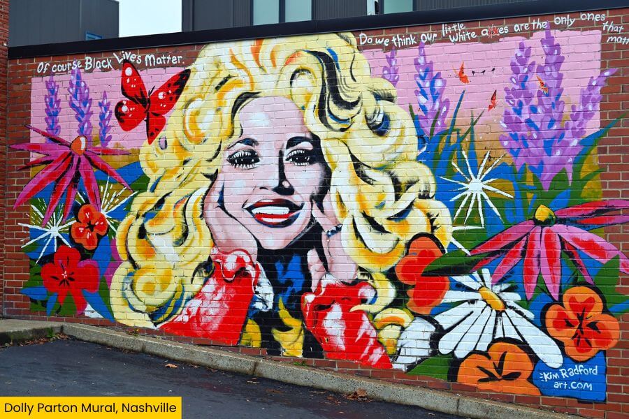 It’s painted in very vivid hues, with Dolly’s iconic blonde curls and warm smile making it a favorite selfie stop for both locals and tourists.