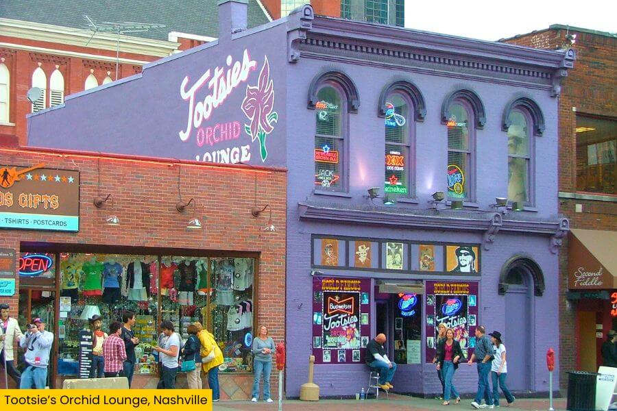 Up next is Tootsie’s Orchid Lounge, which is hard to miss with its bright purple exterior and neon signs.