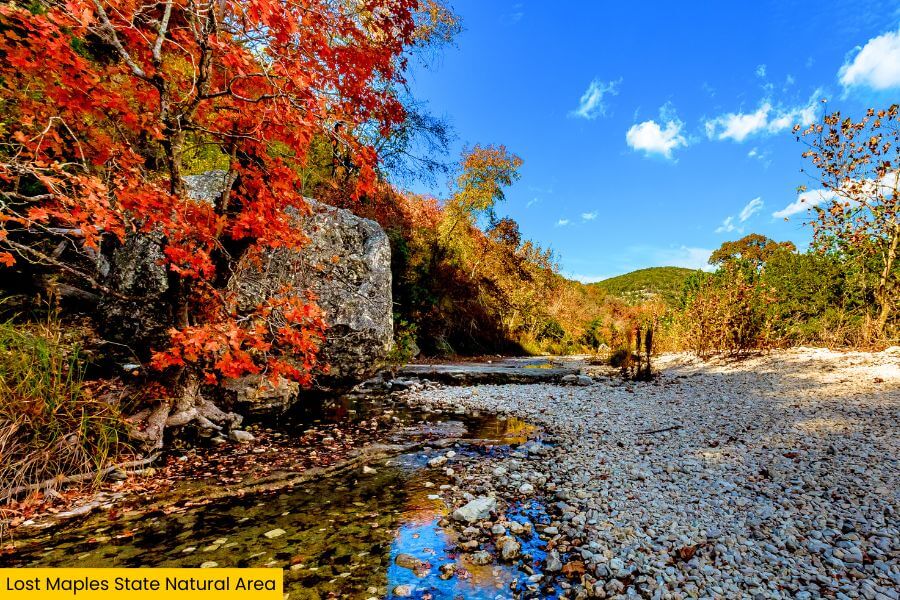 You’ll find Lost Maples at 37221 RM 187, Vanderpool, TX 78885.