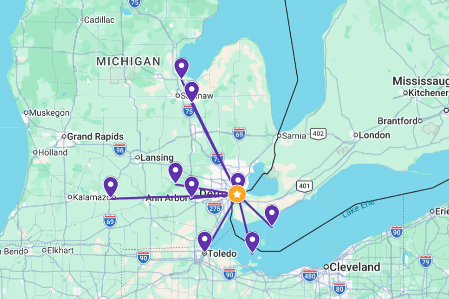 For something out of state, you can head about 1 hour south from Detroit to Toledo, following I-75 straight into Ohio.