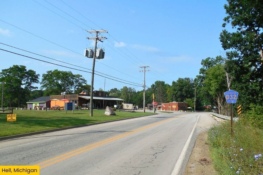 About 1 hour west of downtown Detroit is the town of Hell, a tiny community with one of the most unforgettable names in the country.