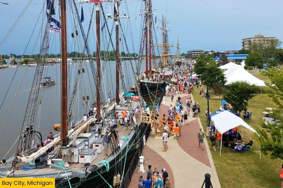 About 1 hour and 45 minutes north of Detroit is Bay City, right where the Saginaw River meets Saginaw Bay on Lake Huron.
