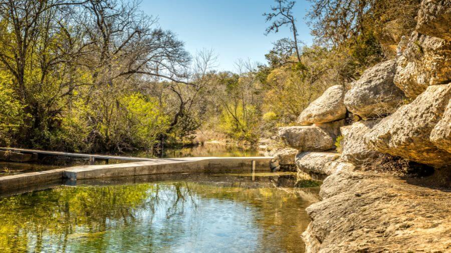 The crystal-clear waters here are perfect for swimming on hot Texas days!