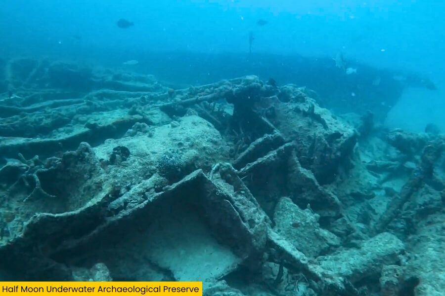 Next up is the Half Moon, a shipwreck with a wild backstory that now sits just 10 feet underwater in Biscayne Bay near Miami.
