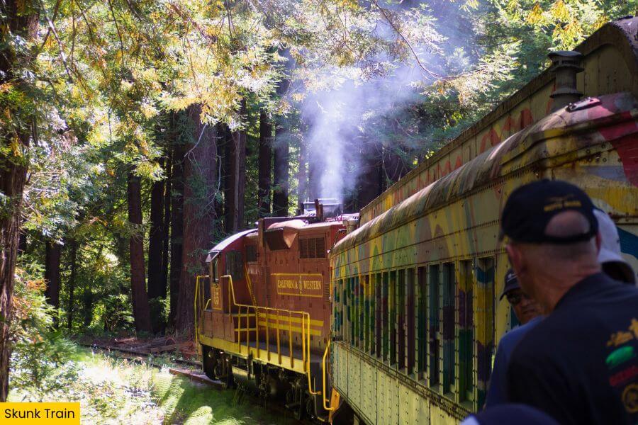 Now it’s time to hop aboard the famous Skunk Train, which has been rolling through these forests since 1885.