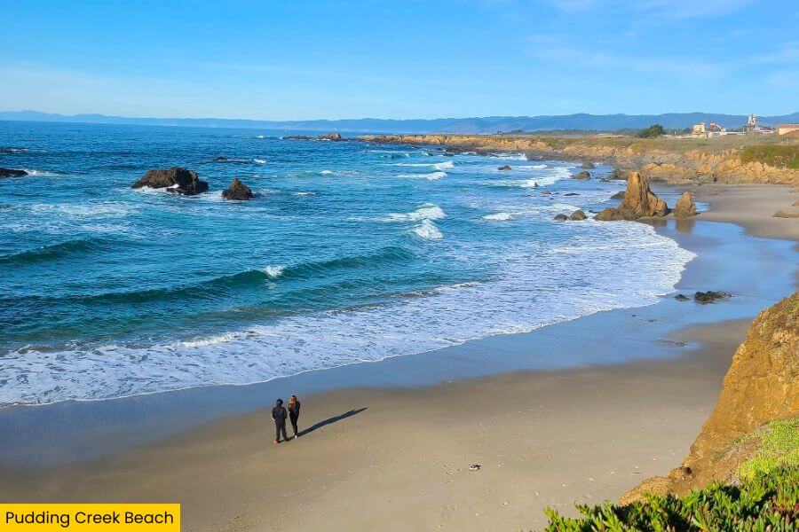 In one weekend, you can stroll along ocean bluffs above crashing waves, spot gray whales, and wander beaches where the sand sparkles in shades of green and cobalt.
