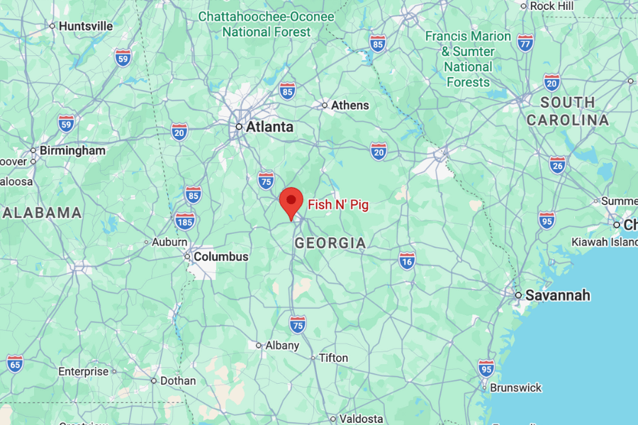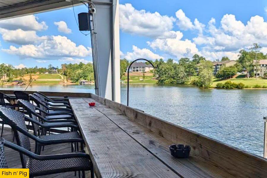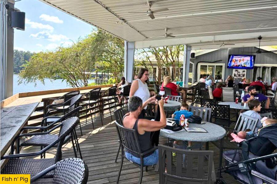 Fish n’ Pig is located right on the shores of Lake Tobesofkee in Macon, Georgia.