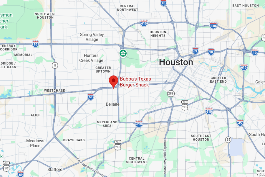 Bubba’s Texas Burger Shack is located on the southwest side of Houston, near Loop 610.