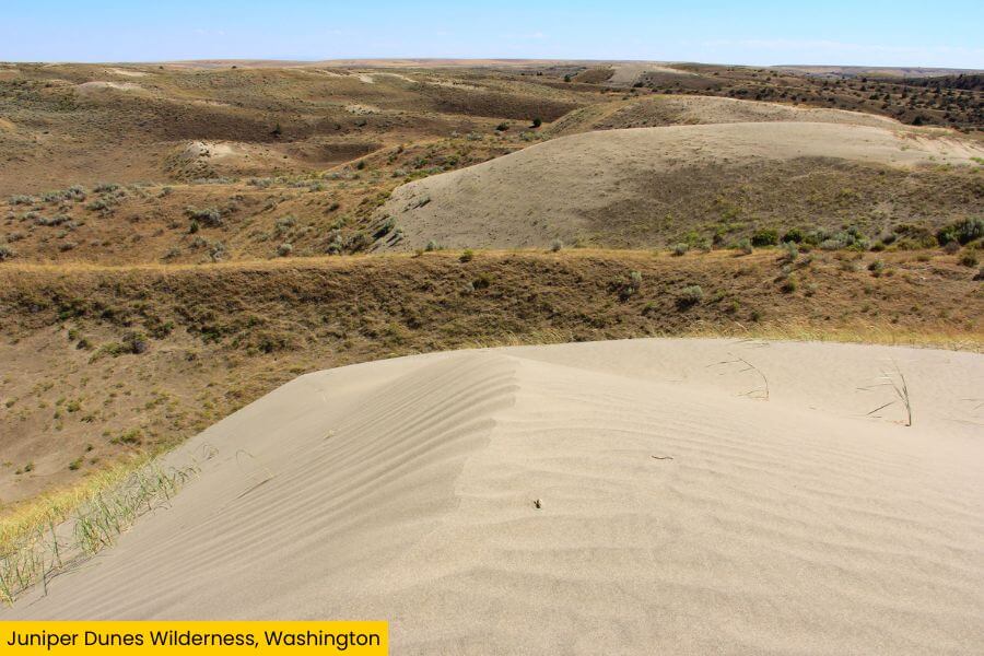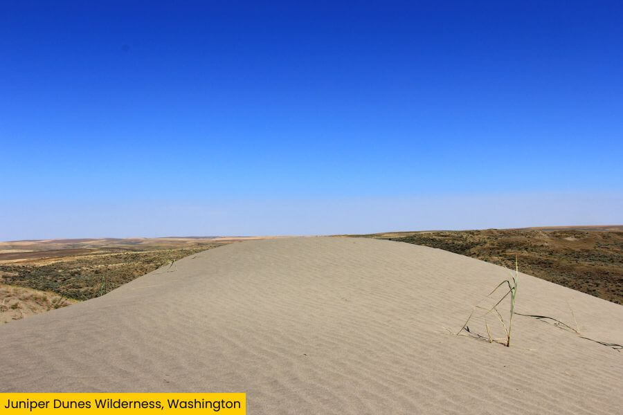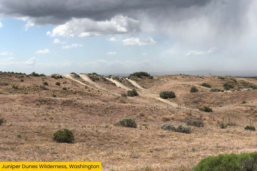 Juniper Dunes Wilderness is a legit desert in Washington, with towering sand dunes, windswept sagebrush, and wide-open skies that seem to stretch on forever.