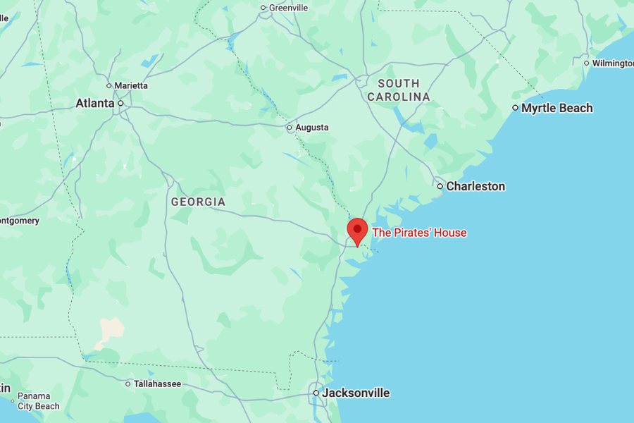The Pirate’s House is located in the heart of Savannah’s historic district, just a block from the Savannah River.