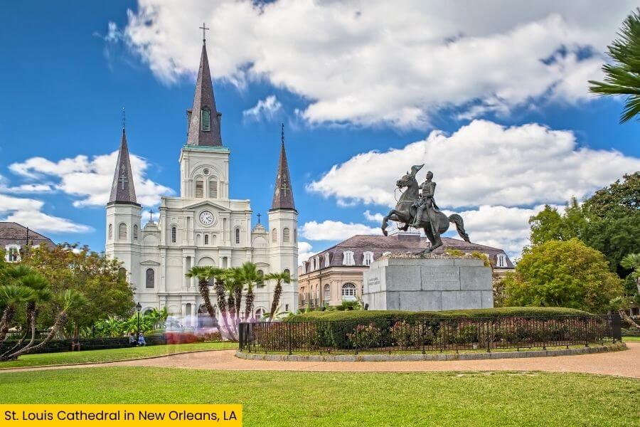 The French Quarter is the heart of it all, where Bourbon Street stays lively late into the night and Jackson Square sits in front of St. Louis Cathedral, the oldest continuously active cathedral in America.