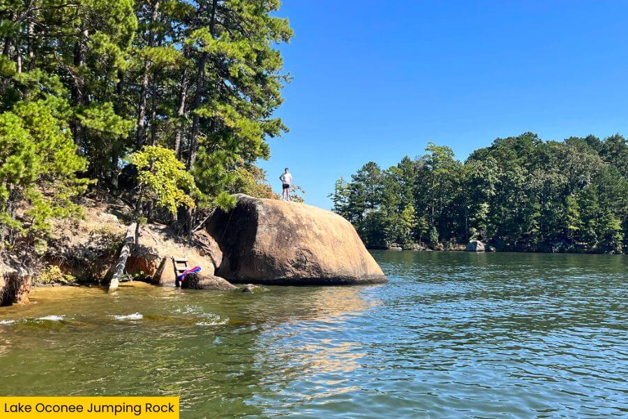 This 10-foot-high rock, known as Jumping Rock, sits on the south end of Lake Oconee near the dam and is accessible only by water.