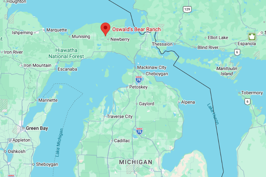 You’ll find Oswald’s Bear Ranch in Newberry in Michigan’s Upper Peninsula, a short drive on M-123 followed by about 4.5 miles on County Road 407.