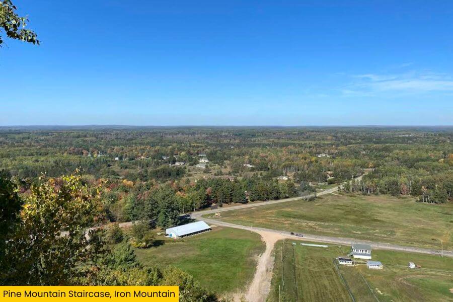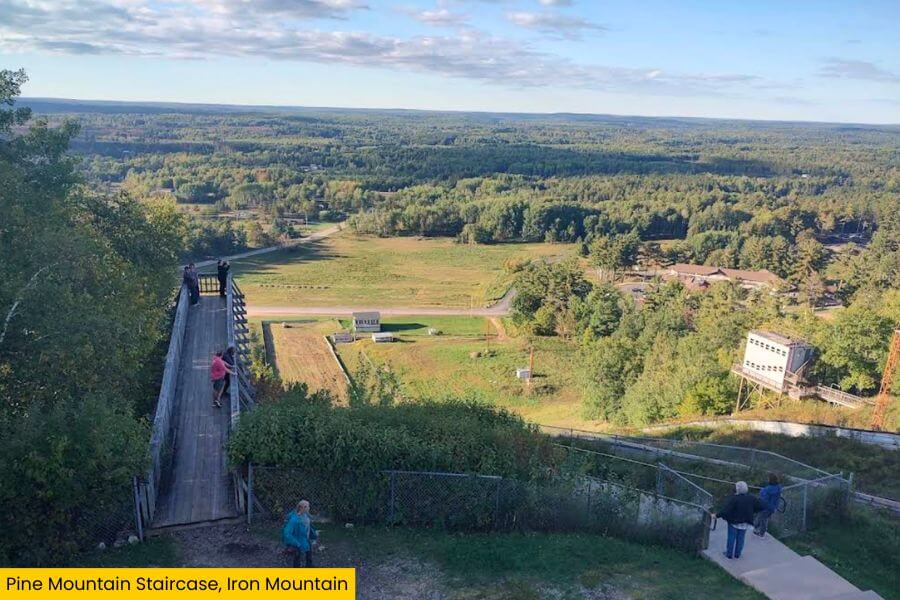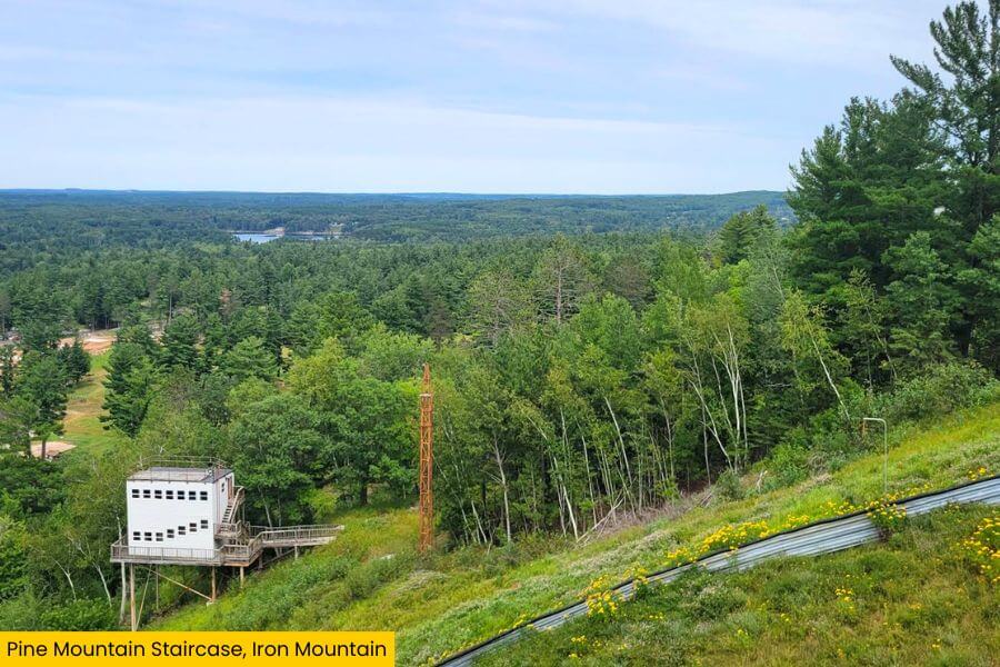 You get wide-open views of Iron Mountain, the surrounding forests, and the rolling terrain of Michigan’s Upper Peninsula stretching for miles.